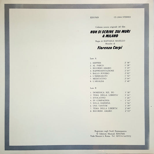 Fiorenzo Carpi - Non Si Scrive Sui Muri A Milano (Colonna Sonora Originale Del Film) (LP, Album) (Near Mint (NM or M-))